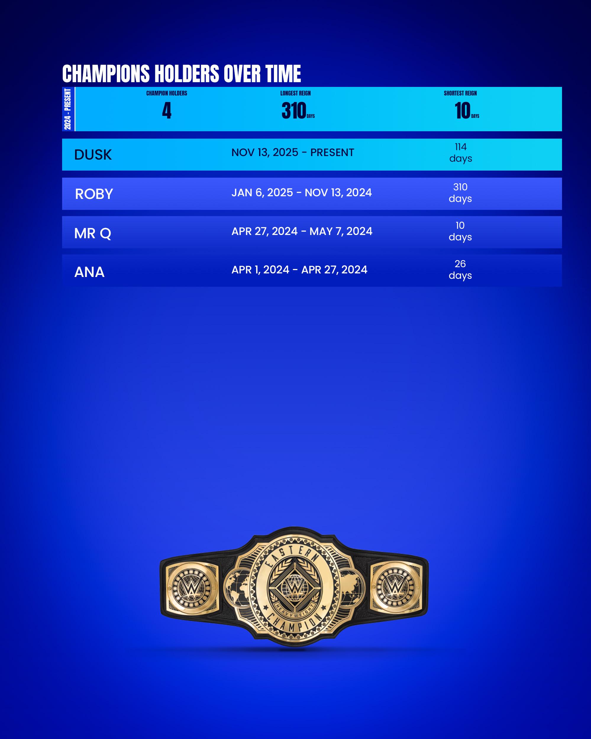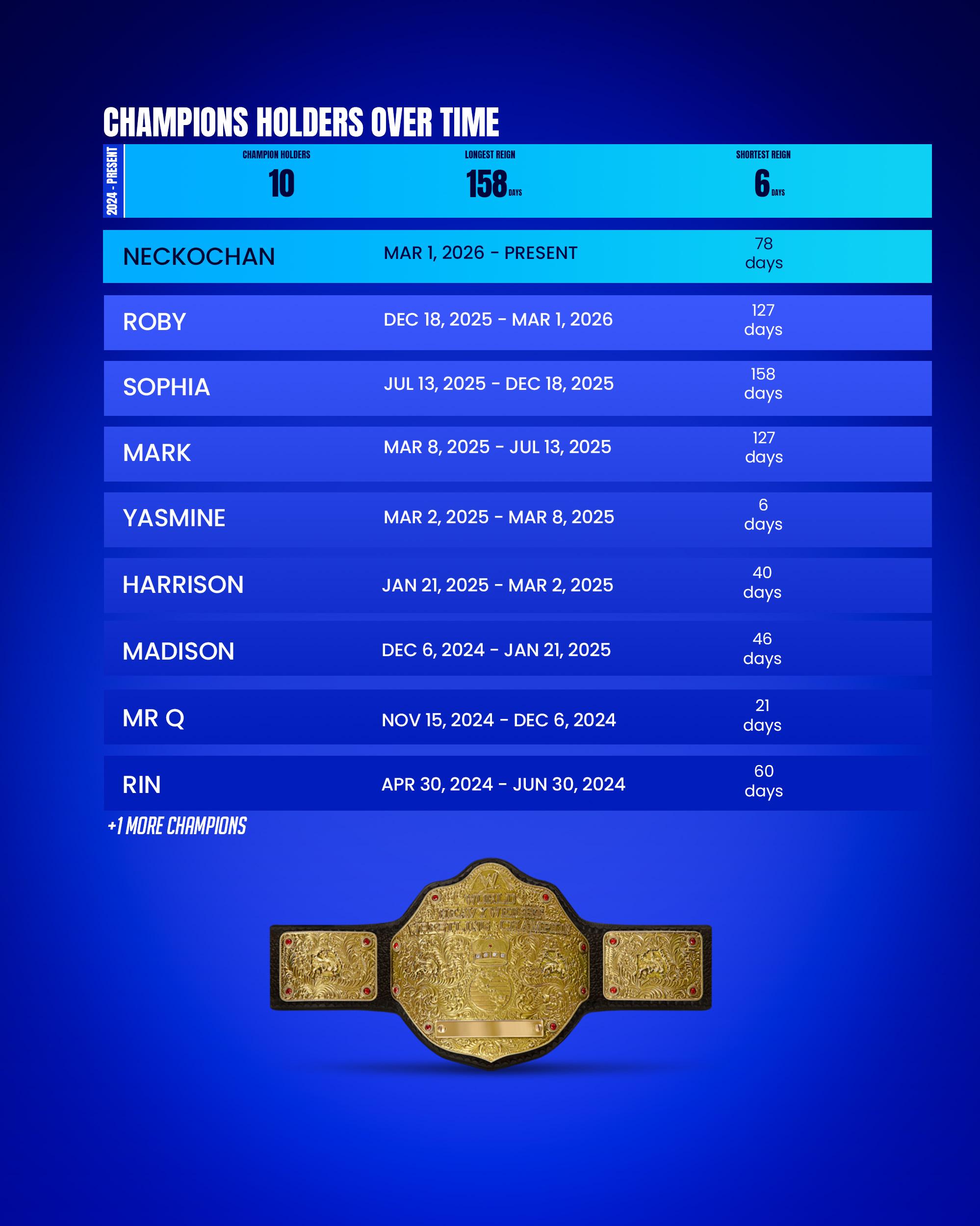 Title Match: If one of the contenders is champion the winner gets 1 bonus point.