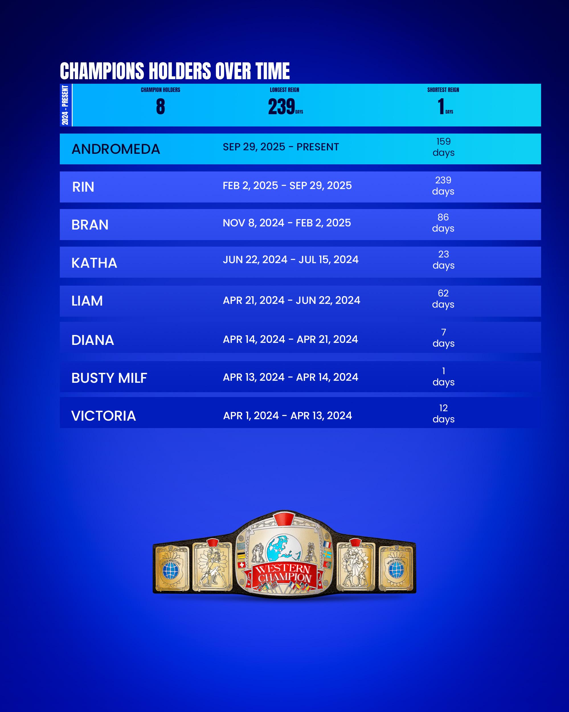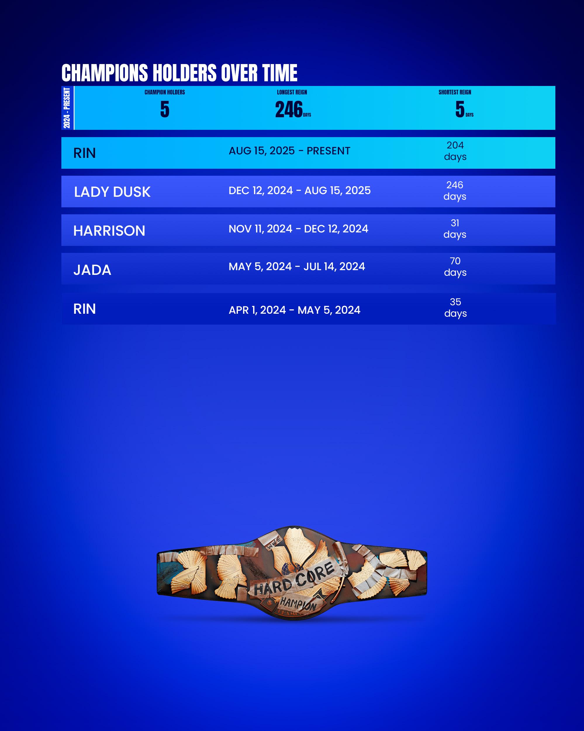 Most Championships Held: Rin - 3