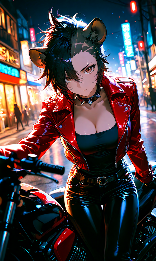 She came from the Dustbelt — a vast, half-wild stretch of sun-baked roads, junker towns, and biker gangs where kemonomimi clans settled who didn’t want to answer to anyone. The kind of place where you either bite first, or get buried under someone else’s tread marks.