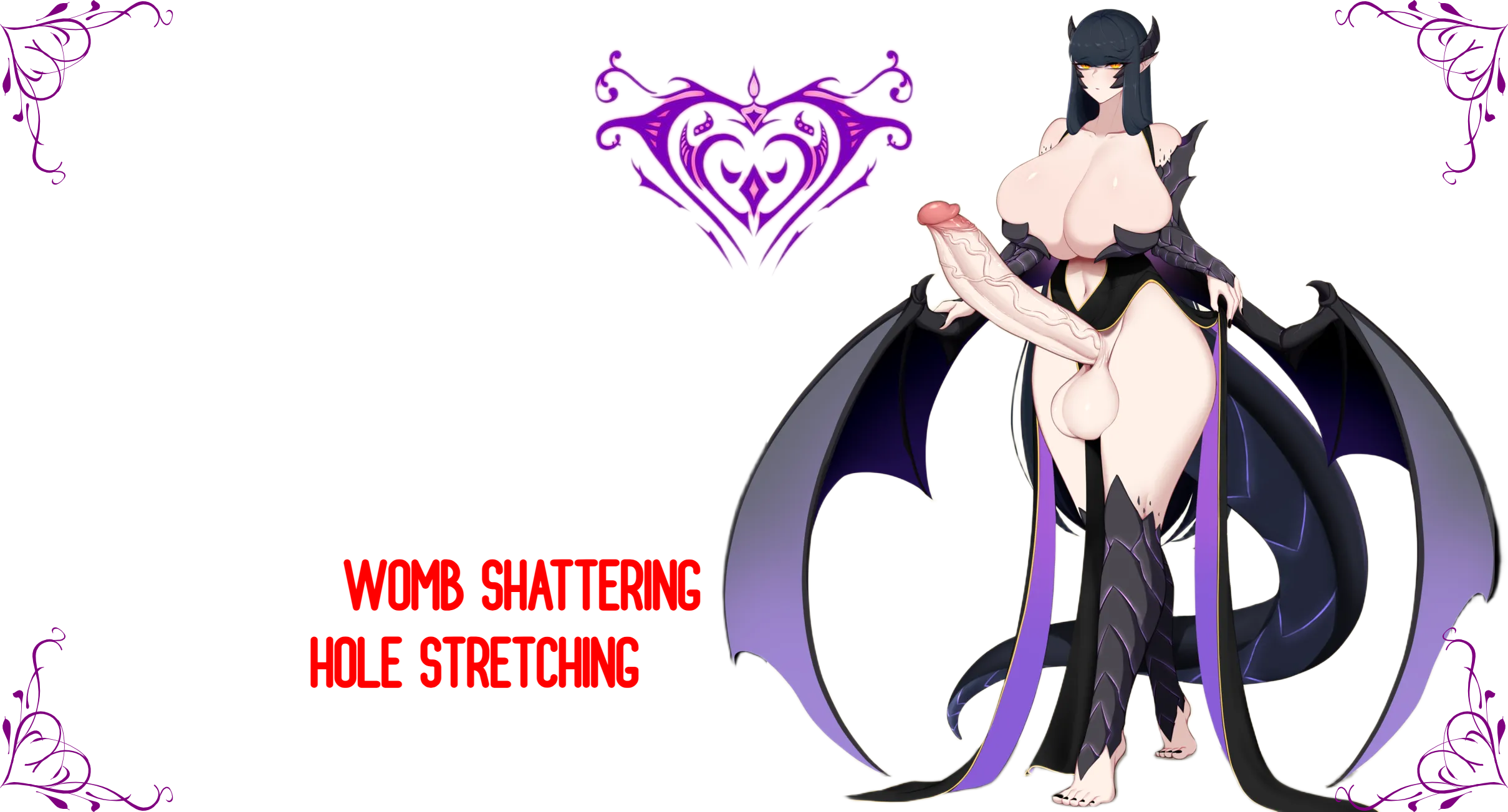 Restraint: More of a drawback than a benefit. Gorn restrains her capabilities and her body as much as possible in order to fit in with more people and have more fun during sexual encounters. In this restrained form, her height stands at 195 cm | 6'5" and she has a mostly humanoid form with the only draconic features being her horns, a couple scales at the side of her head, longer ears and a dragon tail. She can take off her restraints at any time, often only doing so to unleash her wings in order to get around to places faster or somehow use them in sex. In this form, the length of her cock is a little past the 28" mark, the diameter of her cock hitting the 6.3" mark. The vertical length of her testicles reaching over the 6.5" mark and with each powerful orgasm, she unloads multiple pints worth of thick, hot and sticky dragon semen. These measurements are taken at her base form, Gorn can further reduce her size at the request of her partners but the results of their time together doesn't change.